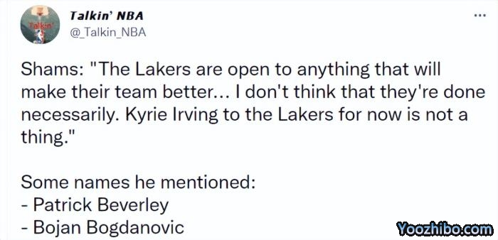 除了米切尔,湖人还对另外两位爵士球员感兴趣。名记Shams在节目上透露:“湖人会考虑任何让球队变得更好的建议,贝弗利、博扬-博格达诺维奇是值得他们关注的球员,得到这样的球员是湖人会尝试去做的事情,但目前来看,欧文是不可能去湖人了。”贝弗利的防守,博格达诺维奇的三分,都会对湖人有所帮助。