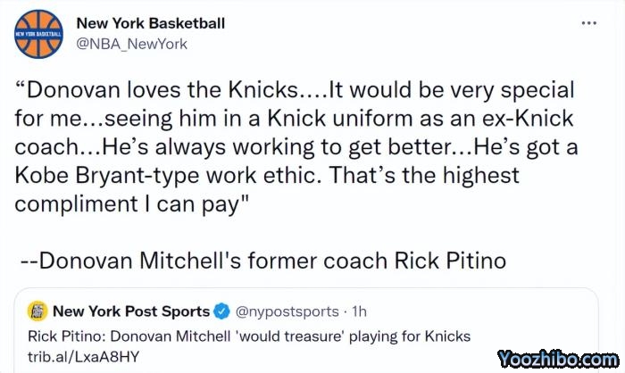 皮蒂诺曾长期持有尼克斯队的季票,但目前已经不是季票拥有者。“如果米切尔加盟尼克斯,我会打电话给 World Wide Wes (尼克斯高管威廉-韦斯利),让他为我买好票。”皮蒂诺说道。