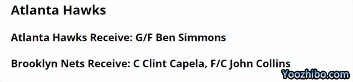 方案3:篮网送出本-西蒙斯,得到老鹰的卡佩拉和约翰-科林斯