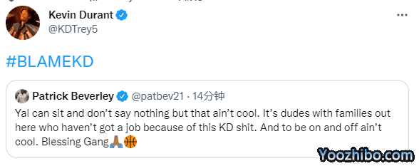 这是杜兰特决定留守后首次发声,强势回应贝弗利的言论。