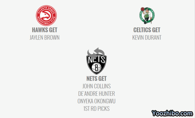 24直播网讯 北京时间8月22日,名嘴比尔-西蒙斯在最新一期播客节目上,提出了一笔关于杜兰特的三方交易新方案。具体方案是绿军得到杜兰特,老鹰得到杰伦-布朗,篮网得到约翰-科林斯、德安德烈-亨特、奥孔古和多个首轮签。