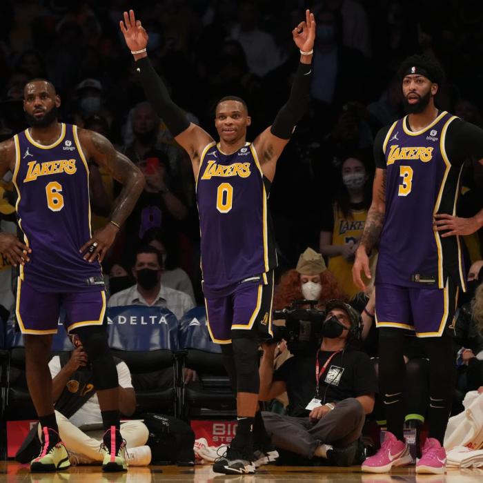 今年休赛期,湖人一直想要把威少交易出去,无奈威少4700万美元的薪水太高,再加上湖人拒绝搭上两个首轮选秀权,湖人多次尝试交易威少都遭拒绝;21-22赛季,威少为湖人出战78场比赛,场均拿到18.5分7.4篮板7.1助攻1抢断,投篮命中率44.4%、三分命中率29.8%和罚球命中率66.7%。