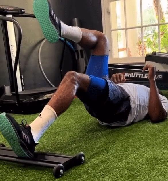 在这段视频中,哈登带着阻力带奔跑,并对腿部进行各项训练。看上去,他的腿部肌肉非常发达,而此前有记者晒出哈登和周玲安的合影,他确实比上赛季苗条了不少。