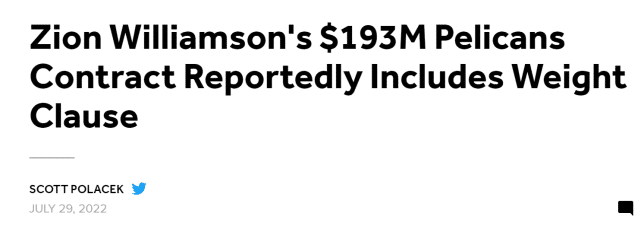 锡安1.93亿顶薪条款曝光!体重+体脂不得超过295:无法达标就扣钱