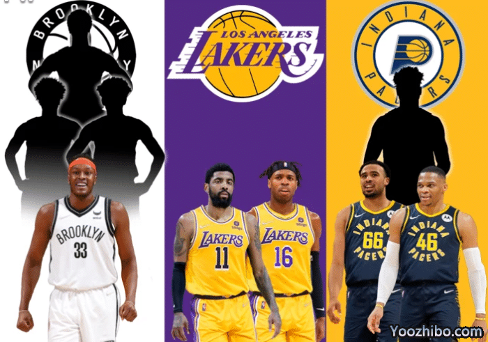 湖人得到欧文和希尔德;篮网得到迈尔斯-特纳、2029年首轮签、2023年次轮签(来自湖人的)和2023年次轮签(湖人来自公牛的);步行者得到威少、霍顿-塔克和2027年首轮签。