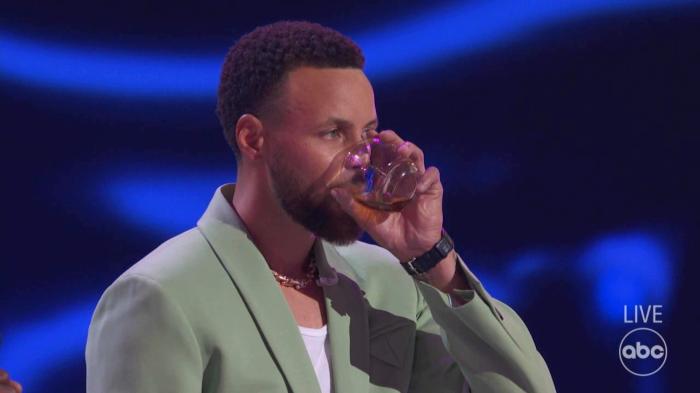 在主持节目时,库里喝着红酒并且调侃詹姆斯:我是第二位主持这个颁奖典礼的NBA 球员。勒布朗-詹姆斯在2007年输掉总决赛后主持了这个节目。所以对我来说,这感觉好多了。