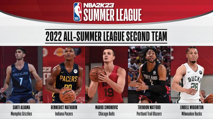 最佳二阵:桑蒂-阿尔达玛(灰熊)、本内迪克特-马瑟林(步行者)、马尔科-西蒙诺维奇(公牛)、特伦顿-沃特福德(开拓者)、林德尔-维金顿(雄鹿)