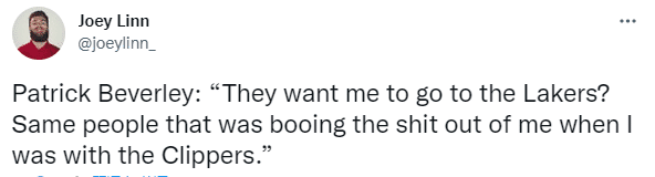 谈到湖人队时,贝弗利表示:他们想让我去湖人队?当年我在快船队的时候,也有同样的人在嘘我。