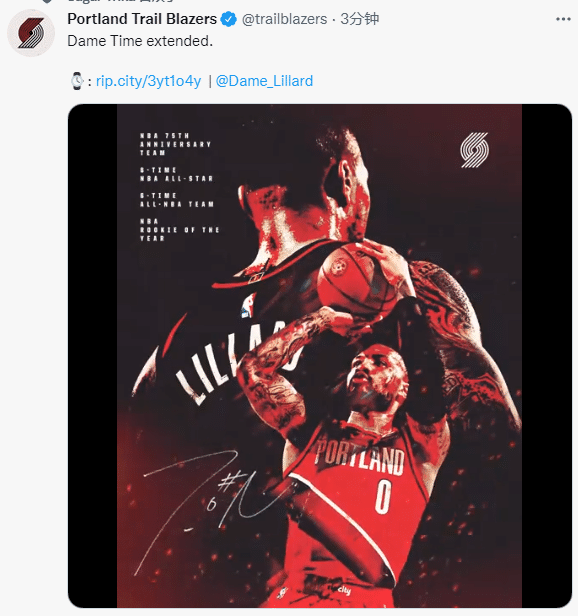 官宣!利拉德2年1.22亿正式续约 承认曾想离队或终老开拓者