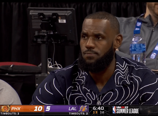 第二节,现场镜头再次给到詹姆斯、佩林卡和哈姆,三个人一起聊天,但随后给到了威少,威少自己坐在一边。太阳再次打出4-0拉开分差,湖人暂停。琼斯和巴斯带队追分,泰勒和卡弗得分稳住局势,金的三分命中,领先9分。小皮蓬连续打进追分,詹姆斯亲自拉起小皮蓬。