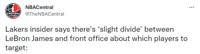 来源:24直播网07-09 09:5724直播网07月09日讯 ,据湖人记者Jovan Buha报道,球队正寻求在交易市场上提升阵容实力,但在球队的引援目标上,超级球星詹姆斯和湖人高管存在一定的分歧。詹姆斯更希望得到前队友欧文,而湖人管理层的一些内部人士更想从步行者换来希尔德和特纳。