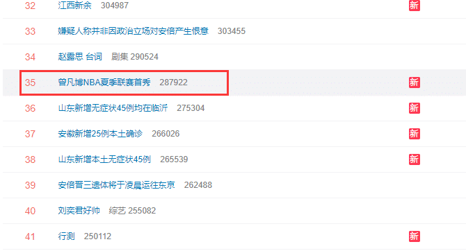 很快曾凡博的夏联首秀也登上热搜榜,引发热议,可见大家对于这位小将的期待值还是很高的。