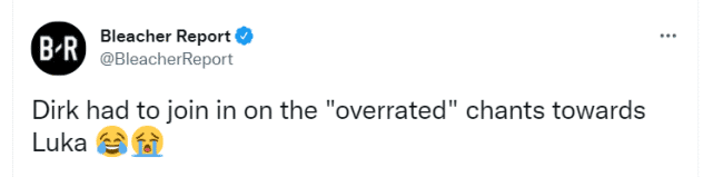 值得一提的是诺维茨基在现场观看了东契奇的比赛,并微笑跟着球迷起哄大喊:“被高估了!”东契奇也是一脸笑意,两人关系实在太好了。