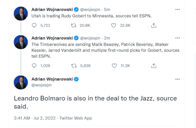 森林狼爵士达成10换1交易:戈贝尔联手唐斯组双塔豪阵