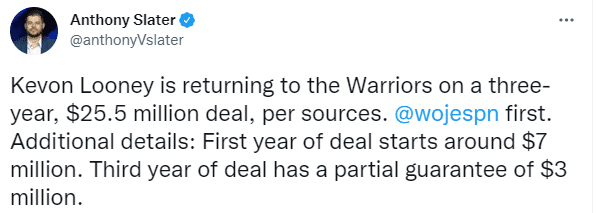 勇士留队第一人!卢尼续签3年2550万助库里卫冕 别利察离开NBA