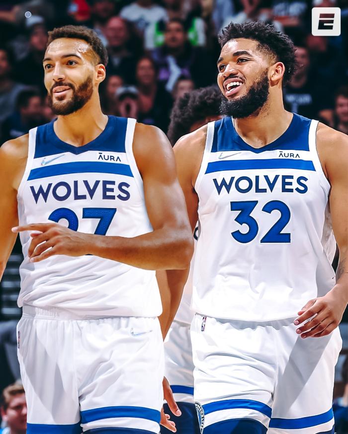 21-22赛季,戈贝尔为爵士出战66场比赛,场均上场32.1分钟能够按到15.6分14.7篮板1.1助攻;如今法国铁塔被交易到森林狼,他的9年爵士生涯彻底结束;新赛季戈贝尔联手唐斯组成联盟最贵双塔。