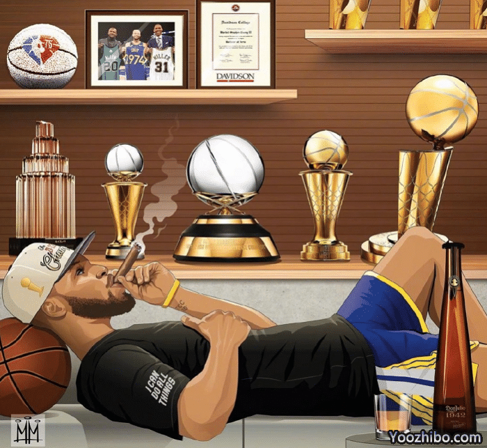 画师绘制库里本赛季成就:三个MVP+75大+三分王+大学毕业证!