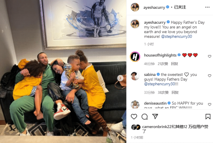 库里的爱妻阿耶莎在Ins上晒出一家五口全家福,还晒出库里昔日在家干家务、和孩子一起玩耍的画面;并且配文写道:父亲节快乐,我的爱人!!!你是地球上的天使,我们无比爱你@库里。