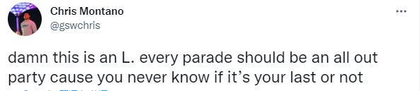 Chris Montano发推:该死的,这是一个失败。每次游行都应该是一个全力以赴的派对,因为你永远不知道这是否是你的最后一次。