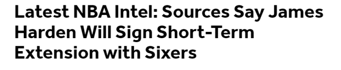 1、哈登预计将和76人新签2年约1亿美元