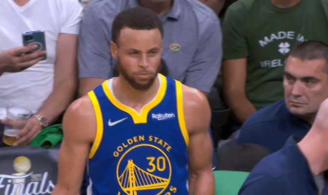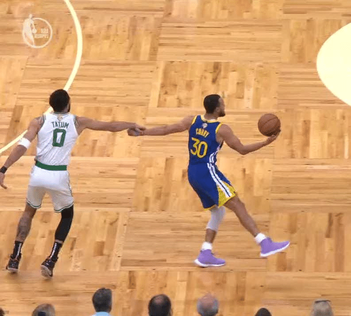 第一节8分58秒,库里和斯玛特卡位时撞倒斯玛特,因此吃到一次犯规,对此库里摊手表不满;随后凯尔特人前场发球,在无球跑位时汤普森撞倒斯玛特,也吃到一次犯规,库里和克莱都摊手不满;勇士两大球星都因撞倒斯玛特而犯规,见状,科尔向裁判施压,向裁判示意斯玛特两次假摔造犯规。