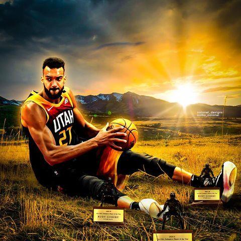2021-22赛季,戈贝尔出战66场常规赛,场均15.6分14.7篮板2.1盖帽,投篮命中率71.3%。他的场均篮板和投篮命中率均排名联盟第一。休赛期的戈贝尔没有懈怠,仍保持训练,他还转发了一张外媒的PS作品。戈贝尔坐在草地上,抱着篮球,腿边放着三座最佳防守球员奖杯。