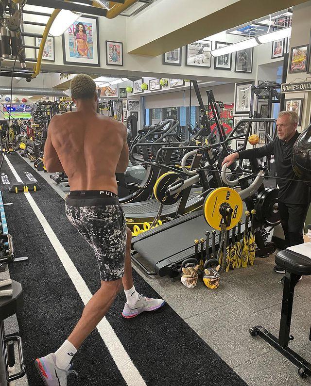 24直播网06月14日讯 爵士中锋鲁迪-戈贝尔更新社媒,晒出了自己的最新训练照。照片上的戈贝尔,已经染了一头金发,赤膊上阵,进行包括拳击在内的各项训练,硕大的肌肉格外抢眼。刚进入联盟时,戈贝尔还是一个看上去很瘦的中锋,力量和体重明显不足,经过几个赛季的苦练,如今的他已经越来越壮,俨然一个魔鬼筋肉人!戈贝尔晒照后不久,霍华德为他点赞。