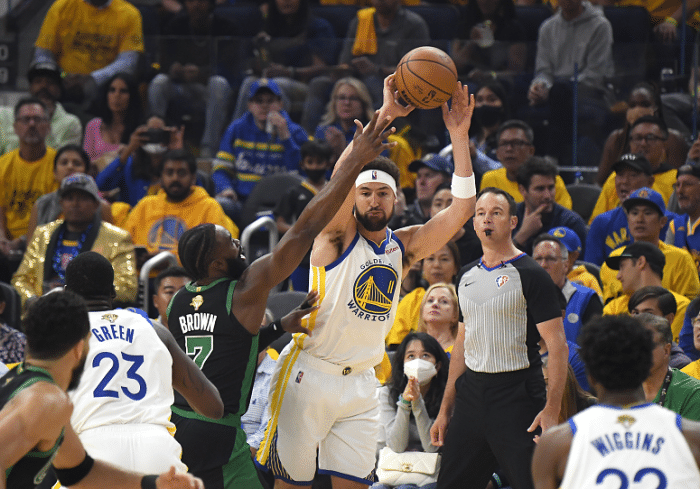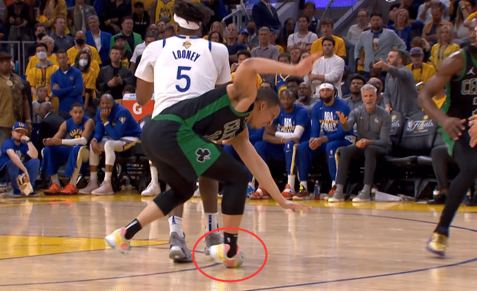 下半场,凯尔特人疯狂反扑,在一次进攻中,斯玛特为塔图姆挡拆,一只手拽住维金斯,另一只手夹住库里的手臂;斯玛特用这样的方式挡住维金斯和库里,塔图姆投进空位三分,对此库里有些不满,冲着场边的裁判,示意自己的手臂被斯玛特夹住了,被裁判无视。