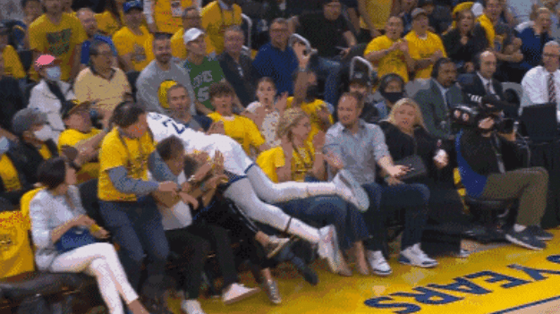 比赛初期,勇士进入节奏很快,维金斯和库里很快就带队打开局面,同时追梦格林也非常拼,抢球的时候撞到了坐在场边的观众。凯尔特人方面的失误偏多,主要是体现在塔图姆的身上。追梦格林表现强势,空切上篮、单臂挂框暴扣,防守层面的扑救也很到位。
