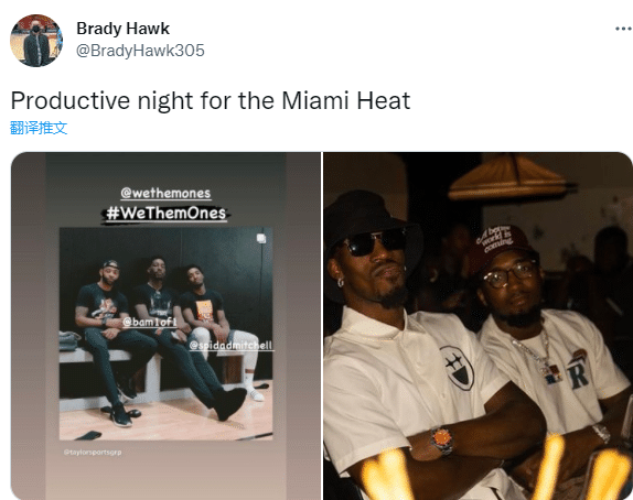 米切尔还在晚些时候转发了自己与阿德巴约此前一起训练的合照;热火记者Brady Hawk转发合影,发推写道:迈阿密热火今晚收获颇丰。