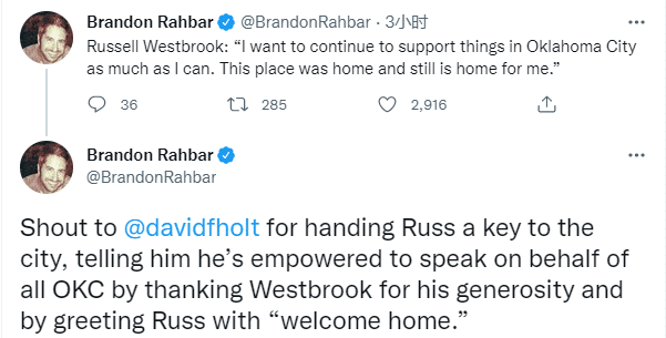 威少回俄城获城市钥匙!市长高呼欢迎回家 多位高管认为他将留在湖人