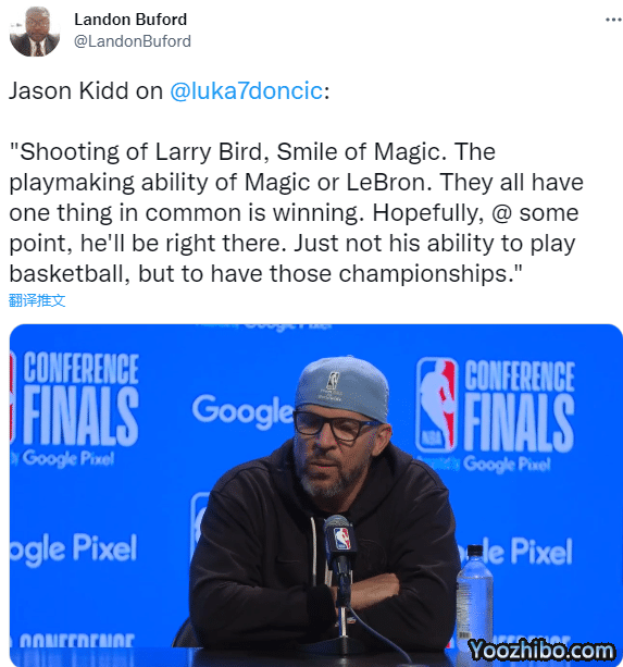 谈到卢卡-东契奇让他想起了哪些球员,基德表示东契奇是伯德、魔术师约翰逊和勒布朗-詹姆斯的结合体,基德还表:只是他跳得不如勒布朗那么高,运动能力不如这些总冠军球员,但他们都有一个共同点——赢球。