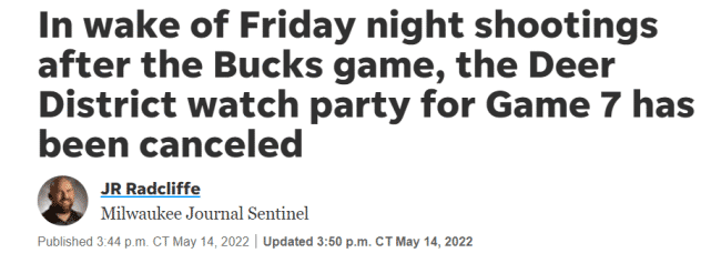 雄鹿在东部半决赛G6大战中不敌凯尔特人,塔图姆轰下46分9篮板,字母哥得到44分20篮板。当天晚上,密尔沃基市中心发生了三起枪击事件,至少有21人受伤,数百人在大街上奔跑逃离。据密尔沃基警方公布,他们已经拘留了11名嫌疑人,预计所有受伤者都能生还。市长约翰逊已经对市中心部分地区实行宵禁。