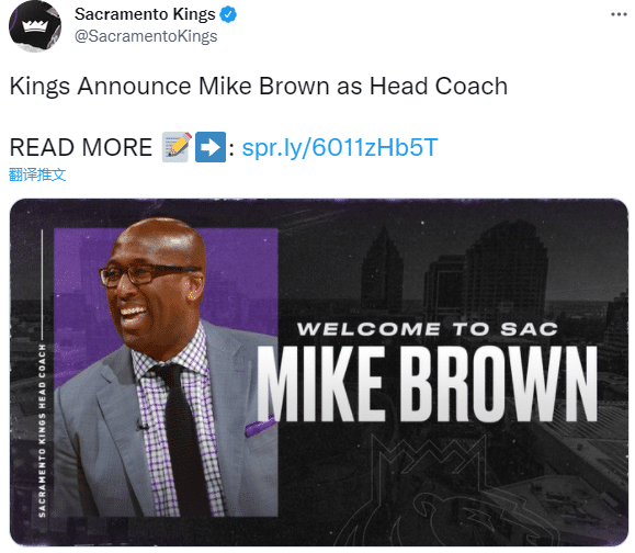 国王总经理发声:迈克-布朗曾与NBA中一些最优秀的球员一起工作,并且是联盟中最出色的防守教练之一。我很高兴能将他丰富的经验带到萨克拉门托。