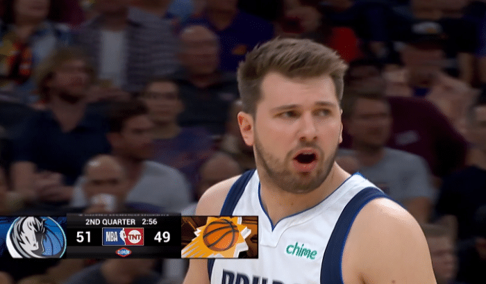 第二节,东契奇休息时,独行侠替补阵容打出15-6攻势反超比分,之后两队展开拉锯战,打着打着东契奇再次开火,连续命中3记三分对飚太阳大军,独行侠半场领先太阳2分;期间东契奇被克劳德挑衅,两人互喷垃圾话,克劳德吃到技犯。