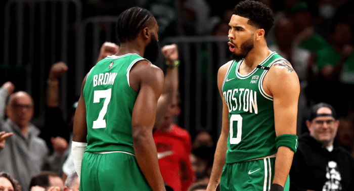 这场比赛凯尔特人创造纪录,他们外线的手感爆棚,全队三分球出手43次,命中20记,创下了队史季后赛单场三分命中数纪录(此前为19个)