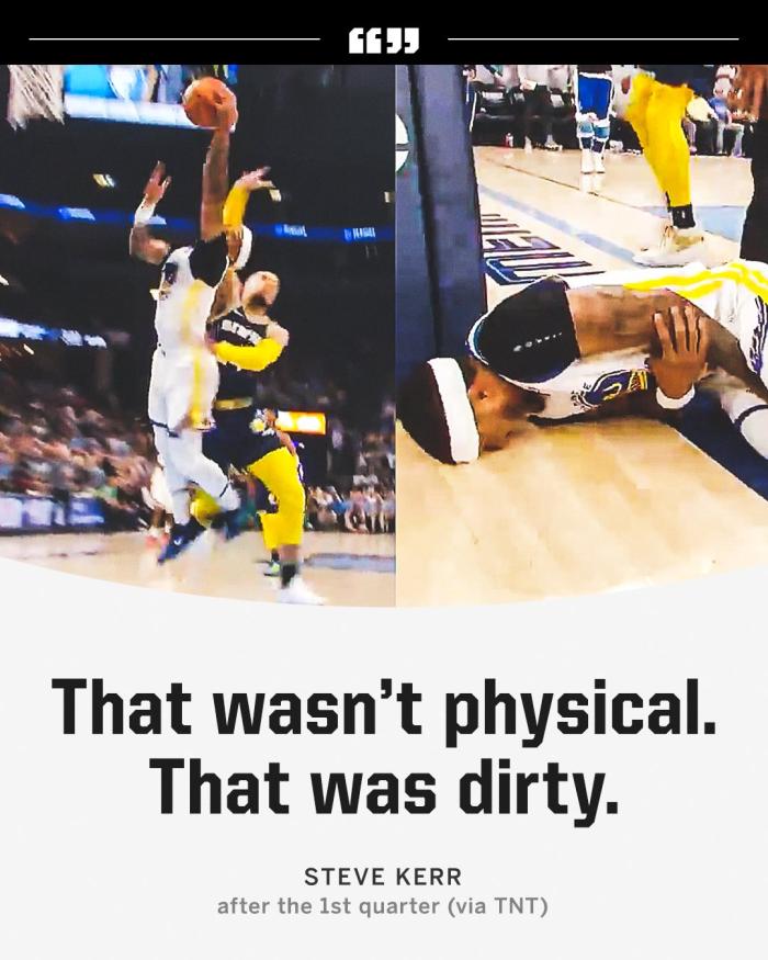 格林重返赛场后,镜头拍到格林的右眼明显肿胀,缝针后带伤出战;另外库里的手指划破,止血后继续比赛;勇士本场已经有3名主力受伤,其中小佩顿因伤提前退赛。