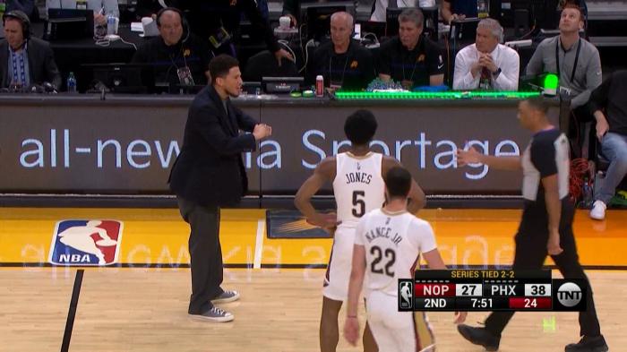 究竟联盟是否针对保罗的踢人动作而追加罚单?也许明天就有结果了;此前四战,太阳和鹈鹕打成2-2平,布克伤停让太阳的晋级之路变得十分艰难,G5天王山大战布克身穿便装观战,甚至化身布指导,走上球场与裁判理论。
