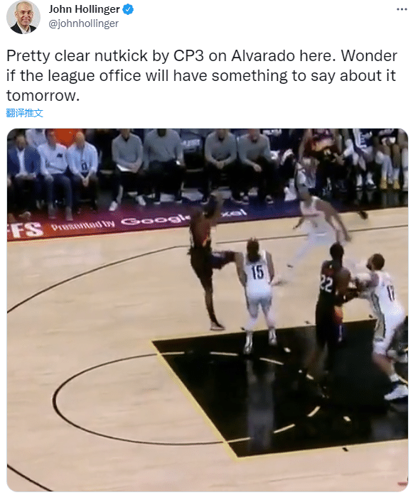 NBA 记者John Hollinger发推写道:很明显保罗踢到了阿尔瓦拉多,不知道联盟办公室明天是否会对此发表意见。