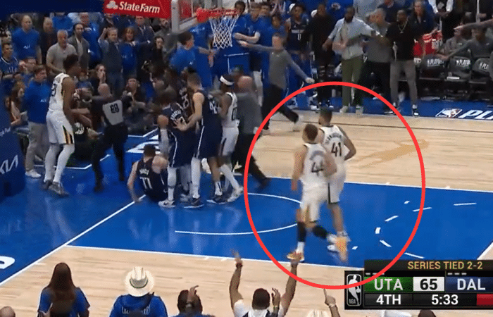 很显然, 怀特塞德这是输急眼之后的表现。而一个细节也正名,爵士球员似乎已经彻底没有心气了。当布洛克和芬尼史密斯冲上前推怀特塞德时,独行侠所有场上球员迅速冲到事发现场,生怕队友吃亏。而爵士一边,只有米切尔第一时间上前,博格达诺维奇和埃尔南戈麦斯不为所动,慢吞吞并不想介入。