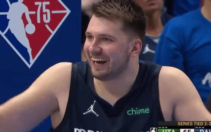 比赛进行到第四节后半段,独行侠已经早早锁定胜局。但爵士不愿放弃,独行侠也没有撤下主力。此时,东契奇强突内线,面对怀特塞德补防,想要顺势来一个隔人暴扣。不过怀特塞德显然不希望当背景板,直接一把将东契奇从空中拉下。