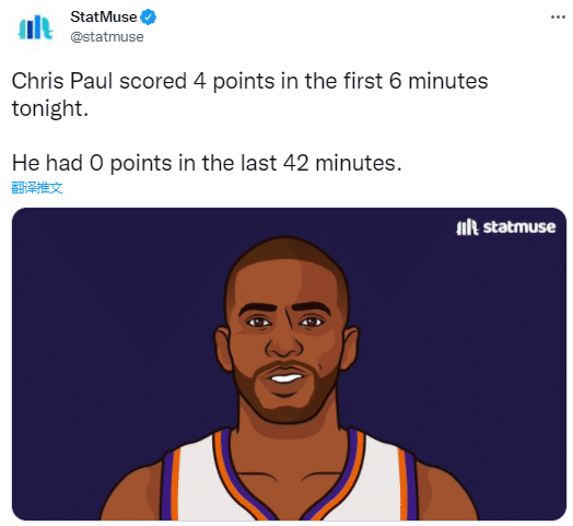 保罗在比赛前6分钟拿到4分,之后的42分钟6投0中一分未得,相比于上一场末节独砍19分接管比赛,今日保罗被鹈鹕悍将阿尔瓦拉多限制过,被防得出现8秒违例以及末节被抢断;太阳输掉G4,布克第一时间离场,保罗创多项耻辱纪录。