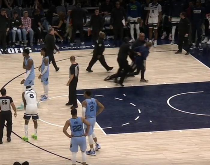 来源:24直播网04-25 10:4924直播网04月25日讯 ,NBA季后赛森林狼主场再次大战灰熊,第三节场上又发生球迷闯进球场的事件,比赛被迫暂停,闹事的女球迷被拖走并且赶出球馆。