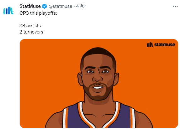 来源:24直播网04-23 15:3724直播网04月23日讯 ,季后赛至今,保罗出战3场比赛,场均得到25分12.7助攻1.7抢断0.7失误,真实命中率66.3%,3战送出38次助攻仅仅只有2次失误,助攻失误比达到惊人的19;保罗已经连续两场14助攻0失误,不愧为控卫之神.