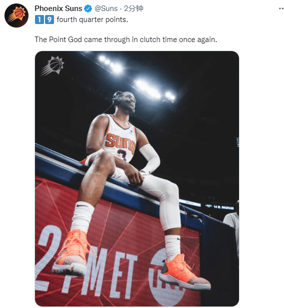 前三节,艾顿轰下28分11篮板,保罗则是9分12助攻,末节圣保罗开启进攻模式,一招中投无人可挡,单节投进7记中投,连投带罚独砍19分2助攻独造23分统治比赛;太阳又是第三节领先进入末节,再这样的情况下,太阳本赛季的战绩是49胜0负,只要领先进入末节,太阳一场都没输。