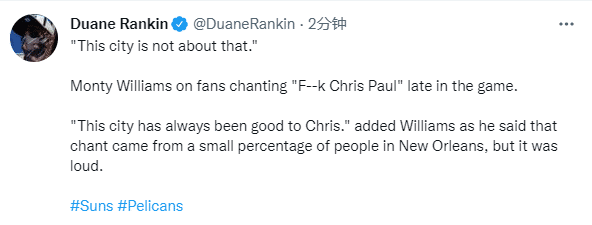 保罗疯狂的表现打得鹈鹕主场的球迷骂人,最后时刻,鹈鹕主场响起“法克克里斯-保罗”的骂声;赛后太阳主帅蒙蒂表示,只是现场一小部分人骂保罗,这与这座城市无关。