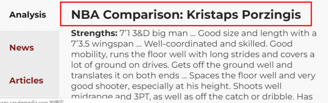 值得一提的是知名选秀网站NBADraft为他列出的模板并不是杜兰特,而是波尔津吉斯。你们认为霍姆格伦会成为状元吗?哪支球队最适合他呢?