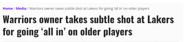 勇士老板疑似暗讽湖人!有球队全力引进老将 却忘了老将容易受伤