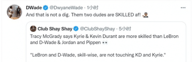麦迪表示强如乔丹皮蓬,在技巧上也只是或许能媲美杜欧。值得一提的是,"闪电侠”韦德本人转发了麦迪的言论,并配文写道:“这并不是贬低,那两位兄弟的技巧是真的很强!”