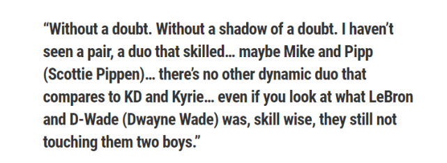 来源:24直播网04-20 16:1224直播网04月20日讯 ,前NBA球星麦迪参加了名嘴夏普的播客节目,他在节目上聊到了球员技巧方面的话题。麦迪表示,现有的两人组合没有一对可以和杜兰特、欧文相比,即便是詹姆斯和韦德的组合,他们在技巧方面也比不上杜兰特和欧文。